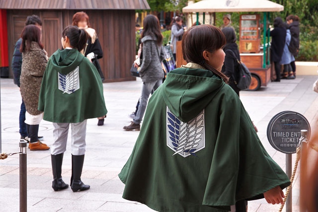 2015年1月より、USJで進撃の巨人アトラクションやクロノロイド展示など、人気を集め、メディアにも大きく取り上げられていました。園内にはアトラクションのほかに、15m級のエレンと女型の実物型巨人がいたり、エレンの母親を食べた巨人がいたり、巨人ブームにのっていました。