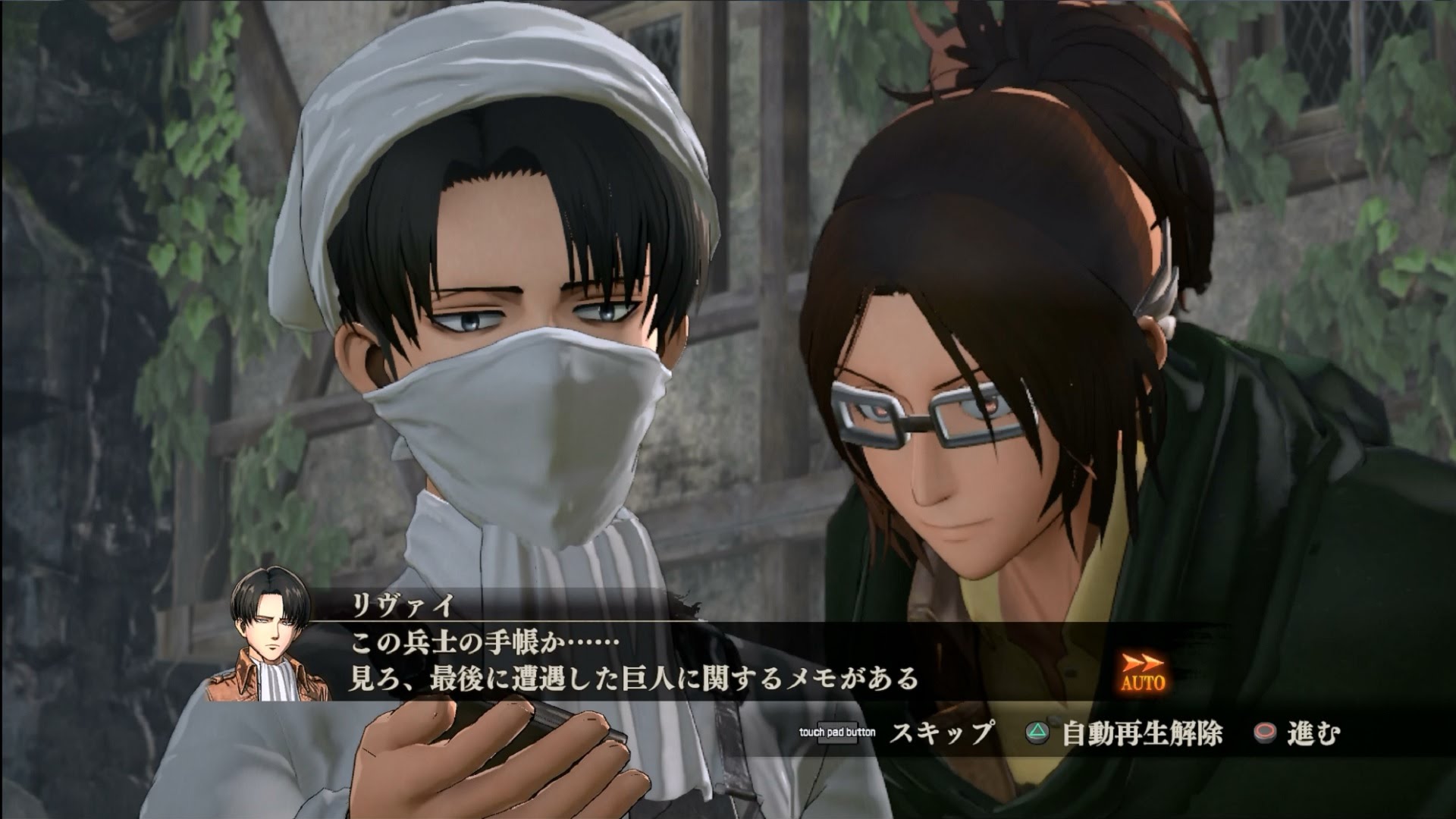 あとはストーリーを楽しめるあたりがいいですね。リヴァイに話しかけたり、逆に操作したり、そしてやっぱりリヴァイは強かったです。